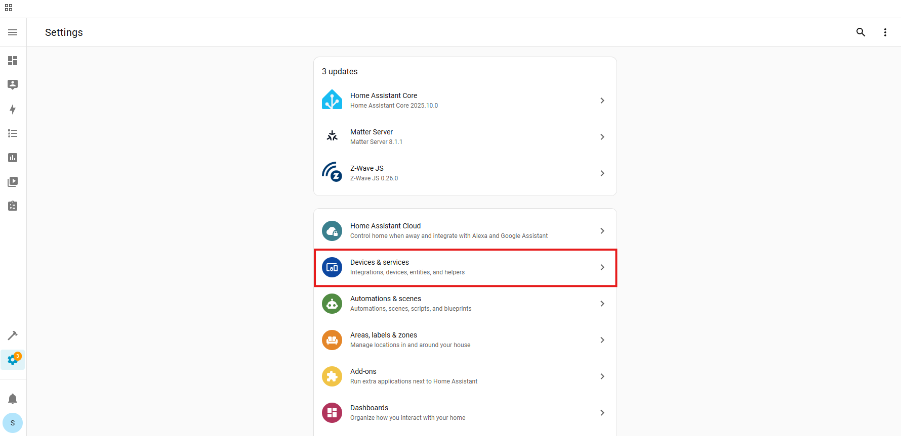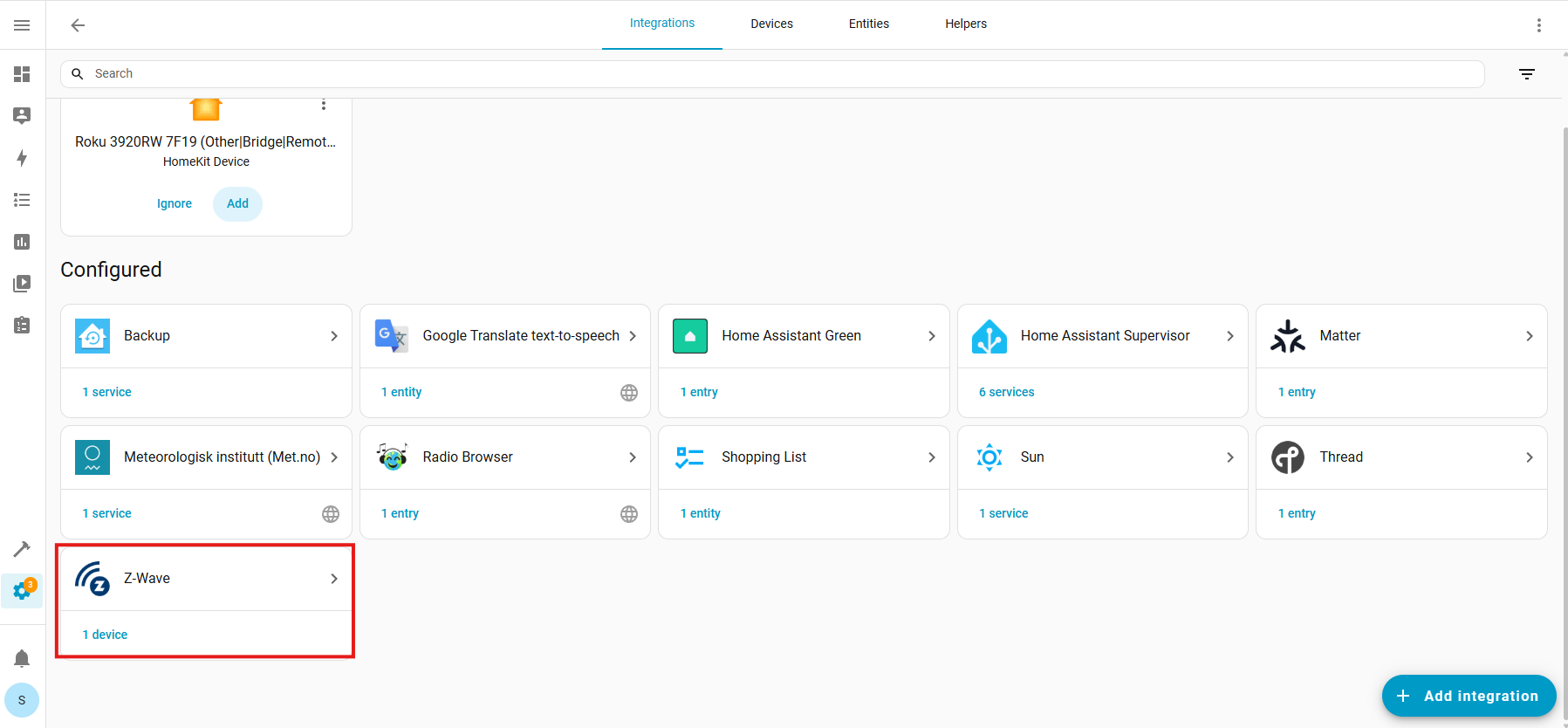 - In Home Assistant: open Settings > Devices and Services > Z-Wave JS > Configure