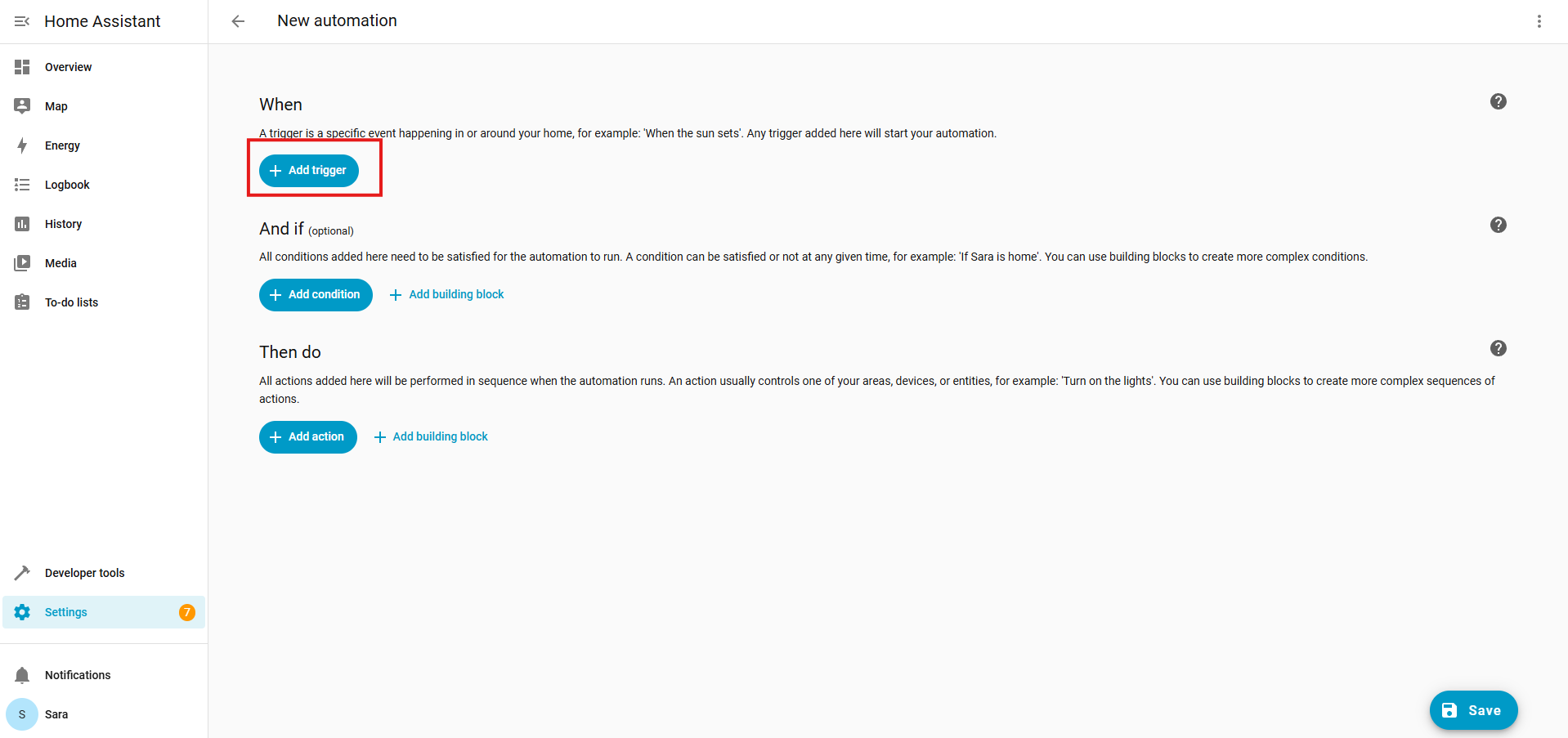 This will bring you to the automation creation section. Under When > click + Add trigger.