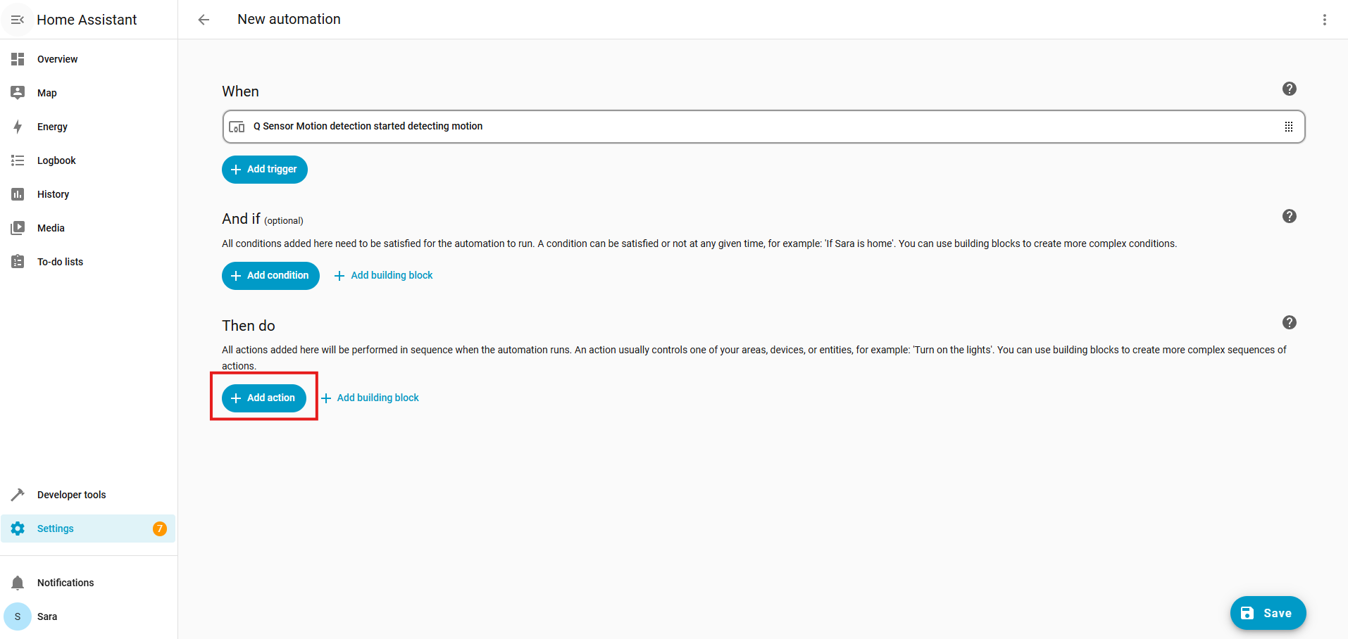 You can choose to add conditions to your scene. Once done, click +Add action under the Then do section.