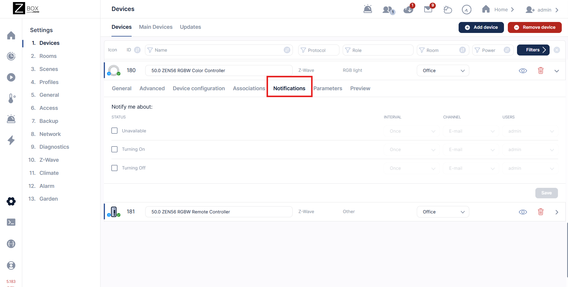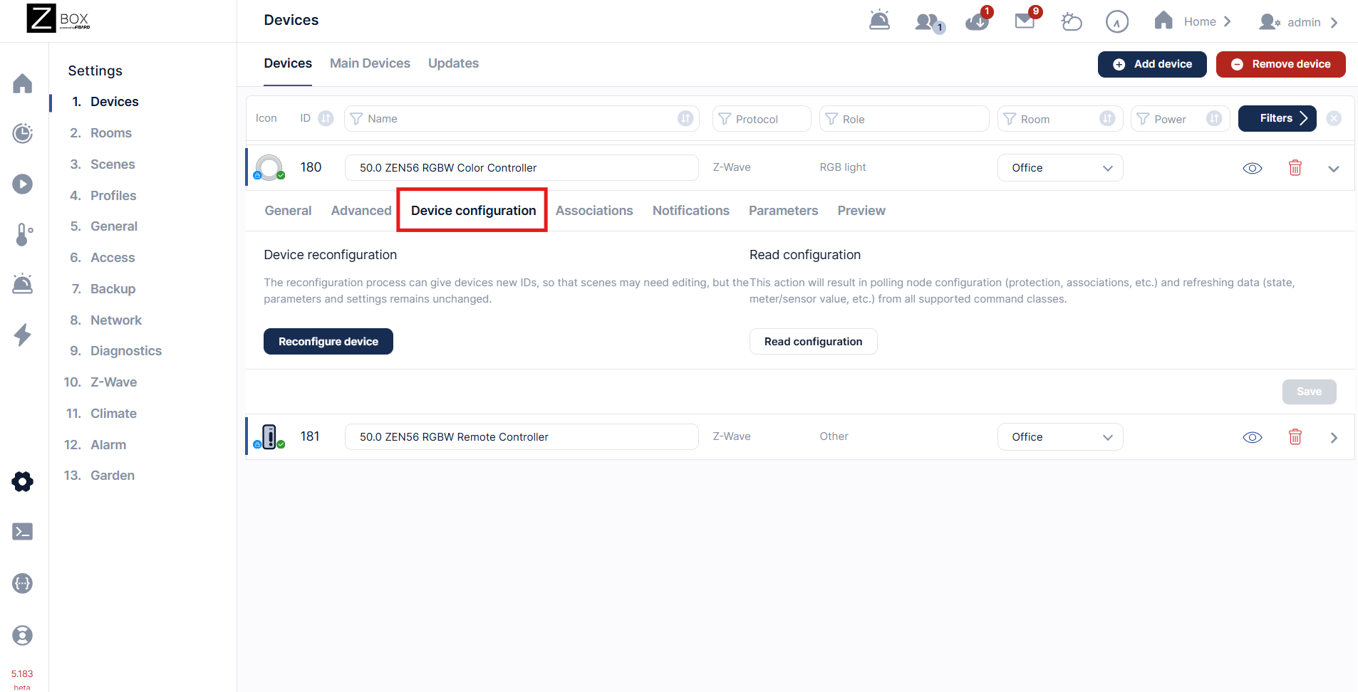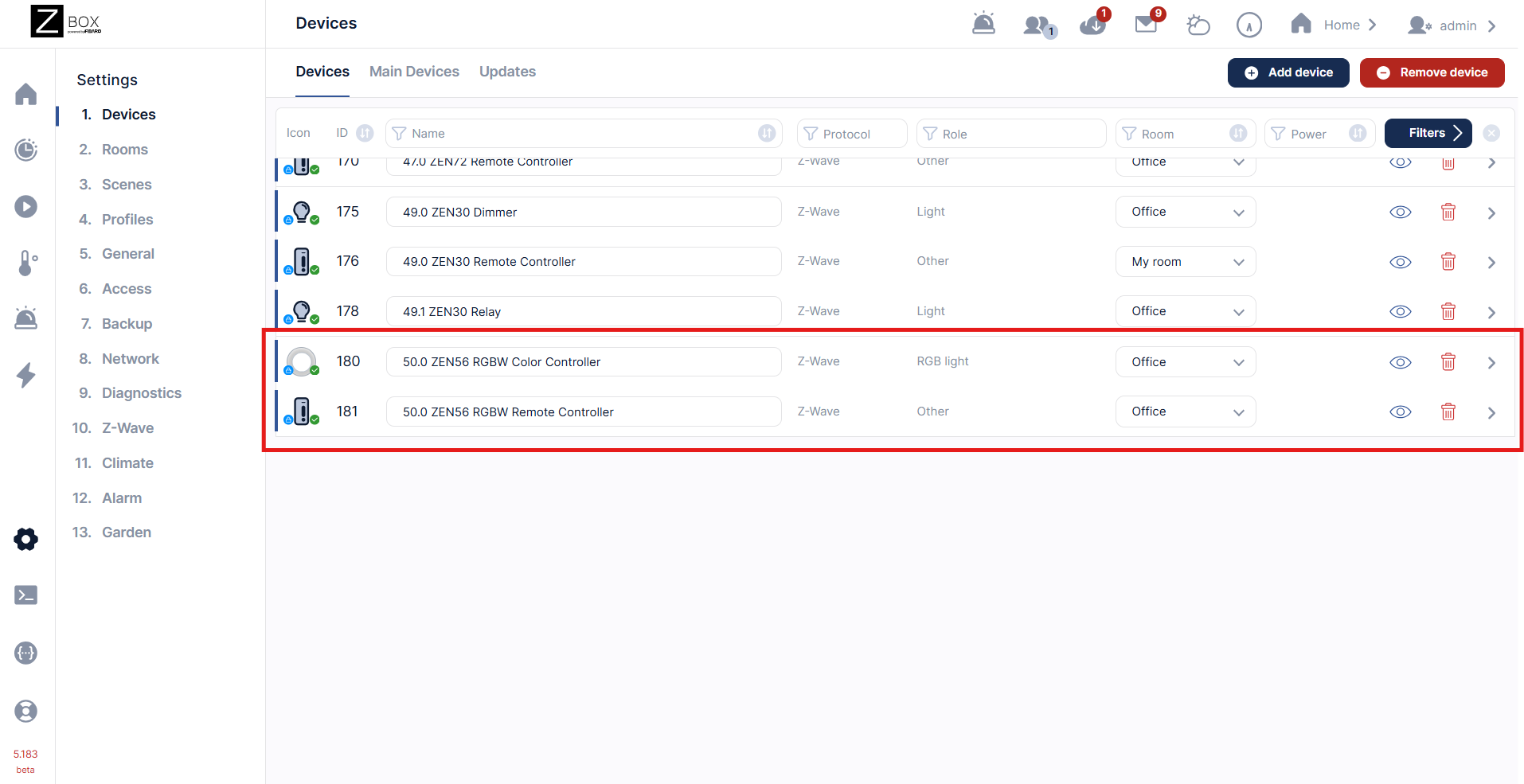 - Open your Z-Box web interface in the Internet browser and select Settings (the gear icon) from the sidebar navigation menu. A list of your existing devices will appear.