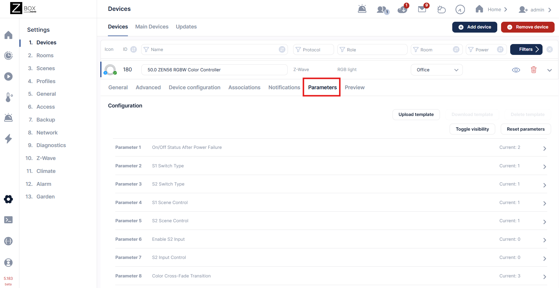 This device uses the updated Configuration Command Class in the device firmware itself, so it will automatically provide the parameter name, descriptions and values without the need for integration or templates for future updates.