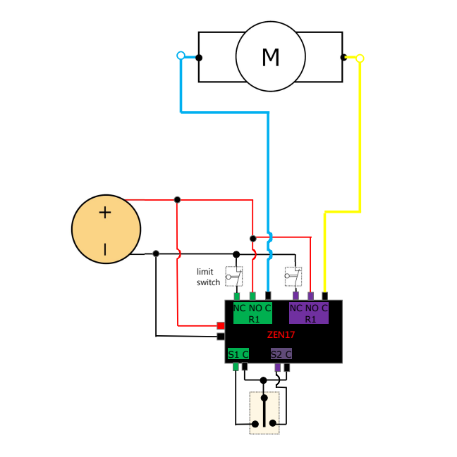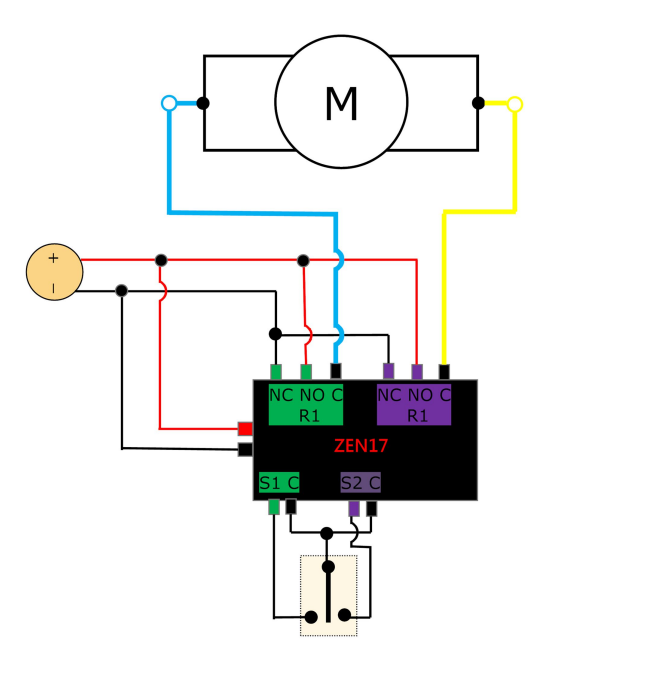 We have provided two separate diagrams below. The first illustrates how to install the ZEN17 with a reversed polarity DC motor.